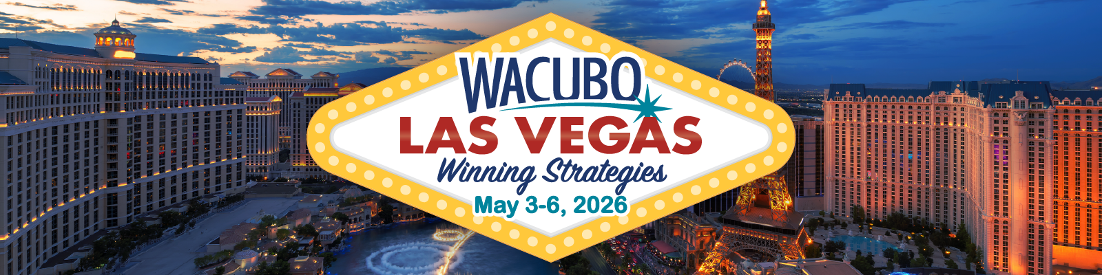 The 2026 WACUBO Annual Conference will be held at the beautiful Red Rock Resort in Las Vegas, Nevada providing a program built around "Winning Strategies" to build organizational resiliency and personal growth. Mark your calendars for May 3-6, 2026, and join us for another great WACUBO conference with inspiring speakers, stimulating educational content, and opportunities to network with higher education and business partner colleagues.