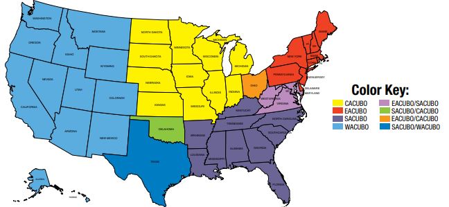 WACUBO is one of four regional associations (Central, Eastern, Southern, Western) making up the National Association of College and University Business Officers (NACUBO). Headquartered in Washington DC, NACUBO is well known for its informational resources and professional representations of the needs and interests of higher education.